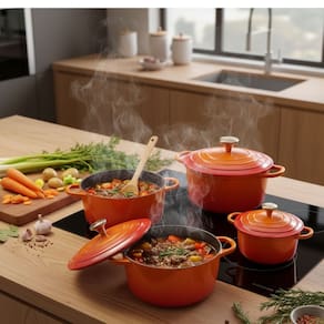 01un Panela com 20cm de diametro e 2,7litros01un Panela com 24cm de diametro e 4,5litros01un Panela com 26cm de diametro e 3,4litros01un Panela com 28cm de diametro e 7,0litrosEstas Panelas são diferentes de tudo que voce ja viu, indispensáveis,não solta residuos nada gruda mesmo sem oleo ,é livre de PFOA, mantem o alimento quente por muito tempo e são leves de manusear podendo ser levadas do fogão à mesa de servir.