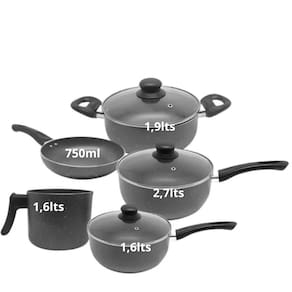Composição: 1u leiteira, 1un Caçarola com Tampa, 2un Panelas com Tampa,1un Frigideira.