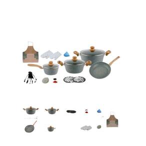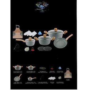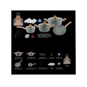 Com o Jogo de Panelas Cookware Antiaderente Ceramic Optima 21Pç Cinza, você terá qualidade e inovação na sua cozinha. Essa linha da Cookware é produzida em alumínio, o que garante durabilidade e resistência aos produtos. Além disso, o revestimento antiaderente cerâmico torna os cozimentos mais rápidos e uniformes, sem deixar toxinas nos alimentos e preservando seus nutrientes. As panelas são compatíveis com diferentes tipos de fogão, como gás, elétrico, vitrocerâmico e indução, trazendo praticidade para o seu dia a dia. O jogo conta com uma caçarola de 24cm com capacidade de 4.7L, uma frigideira de 24cm com capacidade de 2.1L, uma panela de 16cm com capacidade de 1.6L, duas peças de baquelite, seis colheres de nylon, um botão de sucção, uma proteção de silicone, um par de luvas, uma esponja, um avental e uma panela de 20cm com capacidade de 2.9L. As tampas são feitas de vidro temperado e as alças possuem cabo de madeira anti calor. Essas panelas não são compatíveis com lava-louças, mas sua higienização é facilitada pelo material interno. A saída de vapor é um dos pontos positivos desse produto, ajudando no cozimento dos alimentos. Compre o Jogo de Panelas Cookware Antiaderente Ceramic Optima 21Pç Cinza e tenha a de um produto durável e eficiente. Marca: Não Informado