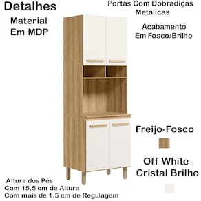 Paneleiro 16992 acabamento refinado e visual sofisticado. Estrutura em MDP, com caixa de 12 mm e frente em 15 mm, e excelente acabamento em Fosco/Brilho. O Paneleiro é composto por 04 portas, com dobradiças metálicas, para garantir a suavidade no abrir e fechar, 02 prateleiras, nichos e puxadores em MDF. Acompanha 04 pés com regulagem de altura de 15,5 cm mais 1,5 de regulagem. Este móvel chegará em sua casa separado em 01 volume.