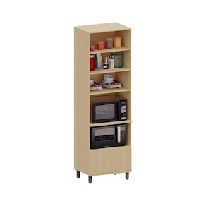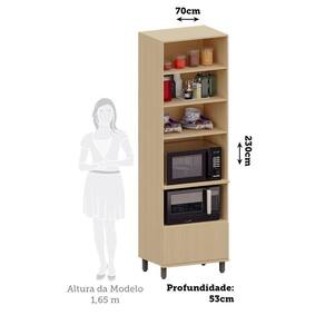 Alem disso, a gaveta conta com corredicas telescopicas, proporcionando mais conforto ao abrir e fechar, e as 3 prateleiras internas sao perfeitas para organizar itens diversos na sua cozinha. O design inovador e moderno faz da torre uma excelente opcao para quem busca praticidade sem abrir mao da estetica. Produzido em 100 MDF.