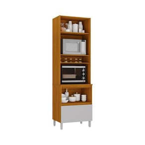Paneleiro Itatiaia Lumina Nicho para 2 Fornos com 2 portas 1 Gaveta e nicho, corpo em MDF 1,5cm pintado, portas em MDF 1,5cm, caixas em papelão revestidas com plástico termo retrátil, corpo em chapa MDF pintado padrão madeirado e portas em chapa MDF.