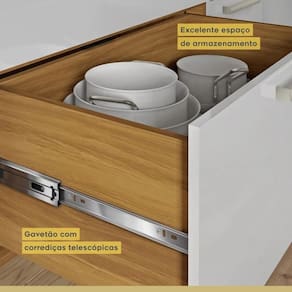 O Paneleiro Princesa da linha Nesher combina elegância, praticidade e inovação, trazendo o conceito das cozinhas planejadas para o seu lar. Com 70cm de largura e nicho para micro-ondas, é ideal para quem busca organização sem renunciar ao estilo.