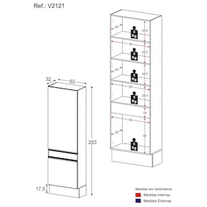 Dimensões do produto montado: Altura: 203cm | Largura: 62cm | Profundidade: 32cm *Você pode consultar as medidas internas na imagem técnica do produto.