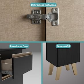 Elaborado com MDP de alta qualidade, puxadores e pés em ABS e dobradiças e corrediças metálicas, garante durabilidade, resistência e sofisticação em cada detalhe, sem abrir mão da praticidade para o uso diário!
