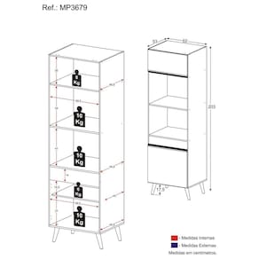 Dimensões do produto montado: Altura: 203cm | Largura: 62cm | Profundidade: 53cm *Você pode consultar as medidas internas na imagem técnica do produto.