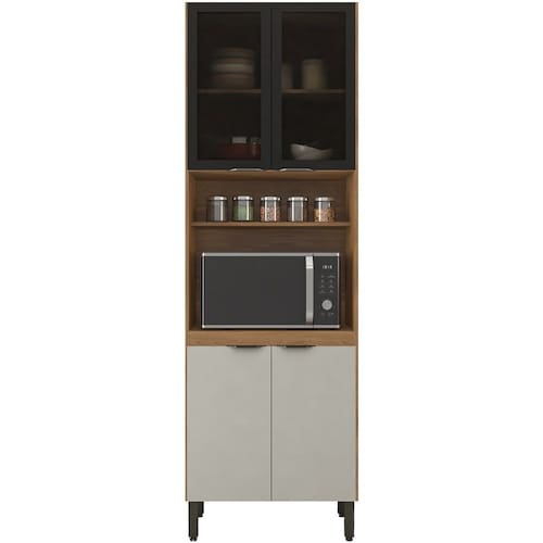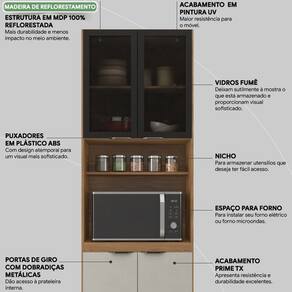 Paneleiro 4 Portas Para Cozinha - Linha Firenze, foi projetado para suportar forno ou microondas, com visual clean e moderno, conta com excelente qualidade e acabamento de alto padrão, possui estrutura em MDP de 15 mm, acabamento em pintura UV e nas portas textura de relevo pontilhado Prime TX. Possui 4 portas articuladas com dobradiças metálicas, sendo 2 portas com vidro na cor fumê tornando visível o interior do móvel com sutileza, equipadas com puxadores cover em plástico ABS na cor Preto Fosco, 2 prateleiras internas com amplo espaço para armazenamento, nicho para utensílios mais utilizados, espaço para seu forno ou microondas, e acompanha pés com regulagem de altura na cor Preto. Este Paneleiro é um módulo avulso da Composição Cozinha Firenze, confira em nosso site outros módulos desta linha, você pode compor sua cozinha da forma que desejar e fazer diversas combinações. Este móvel chegará em sua casa separado em 2 volumes.