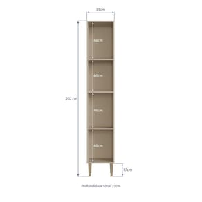 Paneleiro simples 35 cozinha Carol na cor mocca/areia, com uma porta, e 3 prateleiras. Ideal para complementar o espaço da cozinha, guardar utensilios como panelas e eletros de pequeno porte, organizando o ambiente. Acabamento da Porta: Pintura UV Acabamento da Prateleira: Pintura UV Acabamento dos Pés: Polipropileno Altura dos Pés: 17 Ambiente Principal: Cozinha Complexidade da Montagem: Baixa: pode ser montado por uma pessoa sozinha Cor: Mocca/Areia Cor do Produto: Mocca/Areia Cor dos Pés: Champagne Cor Interna: Mocca Escala de Brilho: Semi-Brilho Escala de Brilho da Porta: Semi-Brilho Escala de Brilho da Prateleira: Semi-Brilho Itens Inclusos: 1 Paneleiro, Kit Ferragens e Manual de Montagem Manual de Montagem e Instalação: https://cdn2.madeiramadeira.com.br/atributo/moveis-cadorin/1375574-manual-paneleiro-carol.pdf Material da Dobradiça/Corrediça da Porta: Alumínio Material da Porta: MDP Material da Prateleira: MDP Material do Puxador da Porta: Plástico Material dos Pés: Polipropileno Montagem Flex: Não Necessita Montagem: Sim Origem do Produto: Nacional Pés Reguláveis: Sim Peso: 22 Peso Máximo por Prateleira: 5 Possui Espelho: Não Possui Possui Pés: 04 Possui Portas: 01 Possui Prateleiras: 03 Possui Rodízio: Não Recomendações de Uso, Manutenção e Limpeza: Usar pano seco e macio para limpeza das superfícies Sapatas Niveladoras: Sim Sistema de Montagem: Parafusos, cavilhas, dobradiças Tipo de Dobradiça/Corrediça da Porta: Simples Tipo de Puxador da Porta: Externo