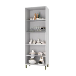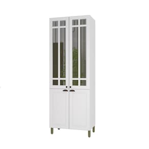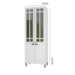 Paneleiro Firenze com design retrô moderno, profundidade de 52cm que acompanha os balcões, oferecendo mais espaço para utensílios maiores. Conta com 4 portas, sendo 2 com vidro reflecta espelhado de 3mm, dobradiças com amortecedor e puxadores em metal na cor bronze. Possui 4 prateleiras internas, pés com regulagem e estrutura em MDP 15mm, com portas em MDF 15mm e pintura UV. Acabamento refinado com pintura PU nas bordas e usinagem decorativa na frente das portas.