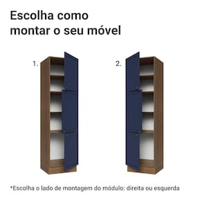 O acabamento fosco de alta resistência da estrutura é em amadeirado Rustic e das portas em Azul, refletindo o estilo americano com um toque moderno. Possui uma textura suave ao toque, trazendo leveza e sofisticação ao ambiente. O destaque vai para os puxadores ponto em ouro envelhecido, feitos com metal resistente, que adicionam personalidade e um charme único.