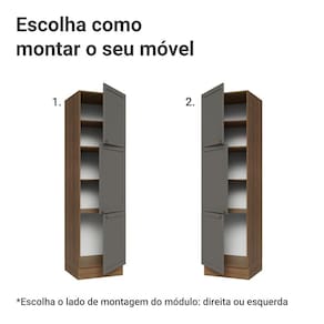O acabamento fosco de alta resistência da estrutura é em amadeirado Rustic e das portas em Cinza, refletindo o estilo americano com um toque moderno. Possui uma textura suave ao toque, trazendo leveza e sofisticação ao ambiente. O destaque vai para os puxadores ponto em ouro envelhecido, feitos com metal resistente, que adicionam personalidade e um charme único.