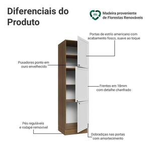 O acabamento fosco de alta resistência da estrutura é em amadeirado Rustic e das portas em Branco, refletindo o estilo americano com um toque moderno. Possui uma textura suave ao toque, trazendo leveza e sofisticação ao ambiente. O destaque vai para os puxadores ponto em ouro envelhecido, feitos com metal resistente, que adicionam personalidade e um charme único.