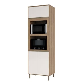 A Torre Mel foi desenvolvida aliando beleza e praticidade na organização de sua cozinha. Conta com 2 portas de abrir, 1 porta basculante com pistão a gás 80N, 1 prateleira internamente, duplo nicho para microondas e forno, puxadores em alumínio gola na cor Inox e pés em PS - poliestireno - na cor champagne. Perfeito para sua cozinha.