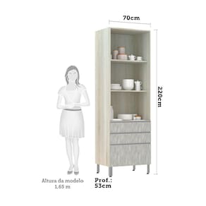 Paneleiro 70cm 2 Portas Vidro Reflecta Bronze 2 Gavetas 1 Gavetão Lis Luciane Móveis - Cinza Claro