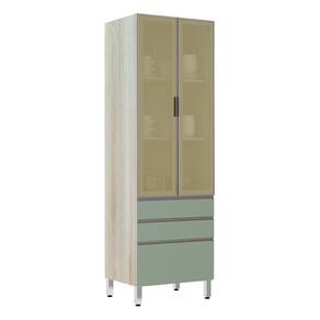 Paneleiro 70cm 2 Portas Vidro Reflecta Bronze 2 Gavetas 1 Gavetão Luci Luciane Móveis - Verde Cinza