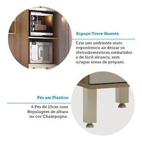 Paneleiro 70cm 3 Portas Com 2 Nichos Para Microondas Isis Lu Avelã/mocca Laca Desenvolvida com materiais de excelencia, a Cozinha Isis oferece excelente distribuicao de espaco interno. E estruturada em 100 MDP e possui dobradicas slow motion com amortecedor incorporado para fechamento suave das portas. Conta com puxadores tipo Aste em Plastico Gold dando um toque especial de classe e elegancia. Paneleiro 70cm 3 Portas com 2 Nichos para Microondas Isis Luciane Moveis