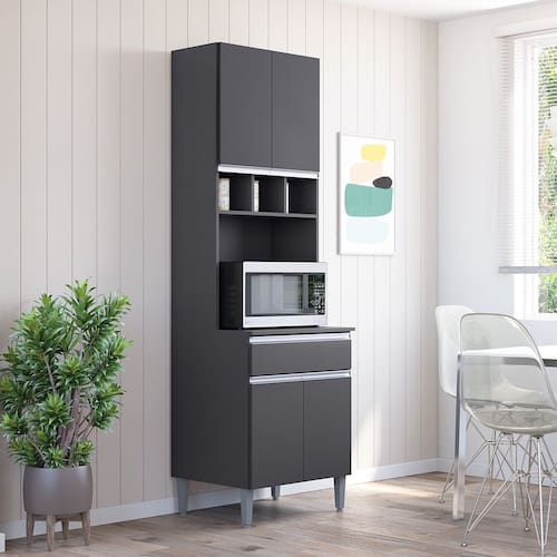 Características: Estrutura MDP Pintura UV 04 Portas com Dobradiças metálicas 01 Gaveta com Corrediças metálicas Nicho garrafeiro Espaço para micro-ondas Pés em PVC
