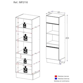 Dimensões do produto montado: Altura: 203cm | Largura: 62cm | Profundidade: 53cm *Você pode consultar as medidas internas na imagem técnica do produto. *As cores do produto podem sofrer variações de tonalidade de acordo com as configurações do seu dispositivo.