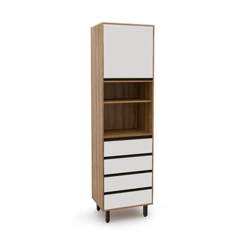 Que tal o Paneleiro Confort?Se você precisa de um espacinho extra para acomodar utensílios culinários para guardar potes com mantimentos e talheres, pode contar com a ajuda do Paneleiro Confort. Com 1 porta e 4 gavetas, o espaço é dividido para organizar seus itens de uso diário e deixar tudo pronto para quando precisar - os nichos ainda recebem porta-temperos, canecas ou decorações. Além de fazer seu dia render mais, o móvel conta com um visual simples de ser combinado com outros objetos no cômodo, como balcões e armários aéreos. Demais, né? Um passo mais próximo da sua cozinha dos sonhos :) Marca: Modern