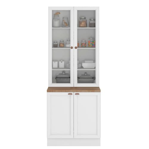 A Cristaleira Olivia da Poliman M?veis ? um produto elegante com excelente espa?o interno. S?o 4 portas de bater sendo 02 delas molduradas com vidro transparente, dobradi?as refor?adas de 35mm, 4 prateleiras internas, puxadores modelo retro em pol?mero com acabamento em alta cobertura para deixar seu m?vel ainda mais elegante, cont?m p?s em PVC regul?veis ao piso de 14,5cm que permitem o nivelamento perfeito, tamb?m acompanha rodap?s remov?veis com presilhas modelo click que facilita na hora de fazer a limpeza. Estrutura em MDP Perffect Touch de maior resist?ncia e com prote??o Bacterban que inibe a prolifera??o de fungos e bact?rias na superf?cie do m?vel, as portas s?o almofadadas/molduradas em MDF inspiradas nas cl?ssicas cozinhas americanas. Produto ecologicamente correto com embalagens preparadas para evitar avarias e permitir que o produto chegue em perfeito estado em sua casa. Perfeita combina??o com os mais variados ambientes. Qualidade que s? a Poliman oferece em seus produtos.