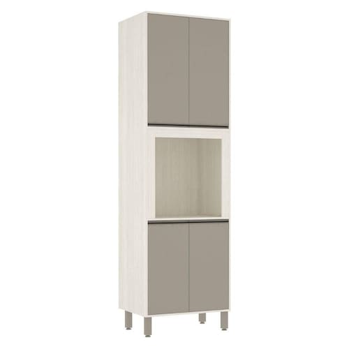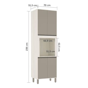 O Paneleiro de Cozinha 70 cm Linea foi desenvolvido aliando beleza e praticidade ao seu ambiente. A portas embutidas remete ao planejado, ainda conta com acessórios requintados como dobradiças em 35mm com amortecimento Slowmotion, dobradiça com amortecedor incorporado para fechamento suave de portas, puxadores tipo gola em perfil alumínio na cor Inox e pés em PS -poliestireno- na cor champagne. Possui 4 prateleiras e nicho para microondas, perfeito para sua cozinha. Com 236cm de altura e maior profundidade com 51,5cm para acomodar seus utensílios mantendo tudo organizado. Disponíveis em duas cores de frontais: Avelã com acabamento FF -Finish Foil- e Mocca Laca.