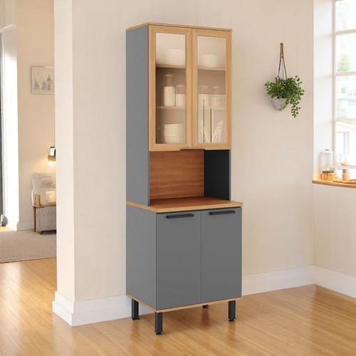 Paneleiro de Cozinha Castanha 700MM P/ Micro 4 Portas C/ Vidro - Cinza/Freijó