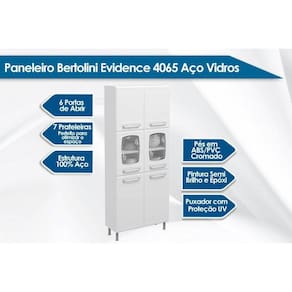 Paneleiro de Cozinha Evidence 7039 c/ 6 Portas (2 c/ Vidro) 80cm Branco - Bertolini