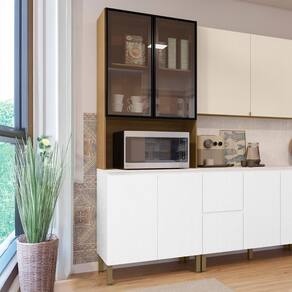 Paneleiro de Cozinha Portas de Vidro Minsk Branco/Freijó Z06 - Mpozenato