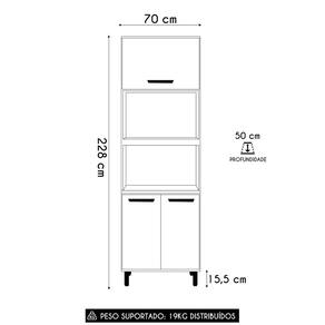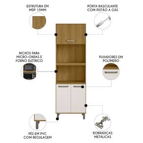 O Paneleiro conta com Nicho Para Micro-ondas e forno elétrico, mantendo seus eletrodomésticos essenciais em um só lugar e trazendo mais praticidade no seu dia a dia. Dispõe de uma porta basculante na parte superior e duas portas convencionais na parte inferior, com pistão a gás e dobradiças metálicas que proporcionam uma abertura suave e controlada, enquanto os puxadores em polímero completam o visual do Paneleiro Torre Quente de forma sofisticada e impecável.