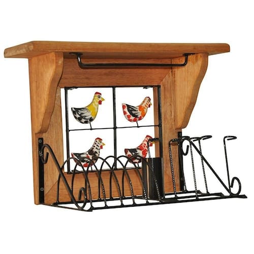 Com ele você pode colocar louças, copos e talheres para escorrerem com muita praticidade. Além disso, a parte superior é uma prateleira que podem ser colocados vários temperos e um porta pano de prato, ficando tudo sempre a mão em um único nicho, ajudando na organização de sua cozinha e facilitando na hora do preparo de alimentos. Se não bastasse tudo isso, ainda possui decorações de galinhas, flores e panelinhas. Será uma obra de arte com utilidade na sua cozinha.