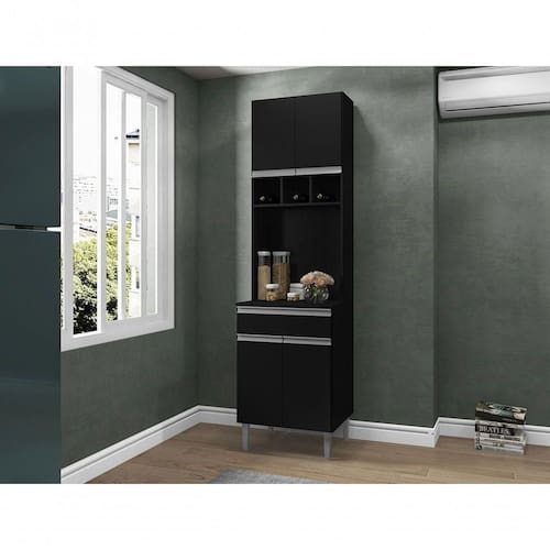 Como é bom ter uma cozinha organizada, com os utensílios, eletros e panelas em seus devidos lugares, não é mesmo?! Então, que tal agregar funcionalidade a sua rotina diária com móveis modulados?! Continue com a gente e saiba mais sobre o Paneleiro Duplo Andréia e como ele pode fazer a diferença na sua cozinha! Com estrutura MDP 15mm, esse paneleiro conta com ótima repartição interna, nichos garrafeiros e espaço sobre o tampo para você dispor eletros, itens decorativos ou o que mais você precisar que fique sempre fácil de encontrar. Ah, já a gaveta pode servir de armazenamento para talheres ou panos de pratos. Em outras palavras, mais armazenamento e mais organização na cozinha, então, você só tem a ganhar com esse paneleiro!