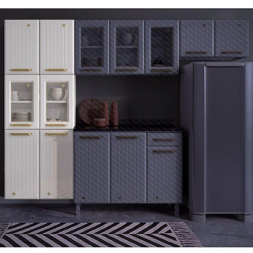 O Paneleiro Duplo da linha Diamante é um coringa na hora de ampliar espaço de armazenamento com praticidade, beleza e qualidade. Fabricado inteiramente de aço, este módulo passa por um processo de pintura eletrostática e anticorrosiva, com acabamento brilhoso – um tipo de tratamento recebido que reforça a durabilidade. É daqueles itens que não podem faltar na cozinha, possui ótimo espaço interno e prateleiras bem distribuídas. Além de toda a qualidade, o visual moderno e cheio de personalidade também é destaque: as delicadas linhas verticais das portas – inspiradas na tendência atual da decoração - em combinação com a serigrafia dos vidros temperados e o aplique em alto relevo do “diamante” trazem ares de sofisticação. Outro diferencial são os puxadores na cor Dourado, cheios de personalidade. Este Paneleiro pode perfeitamente ser combinado com os outros itens da linha Diamante para criar uma cozinha ainda mais completa e cheia de brilho!