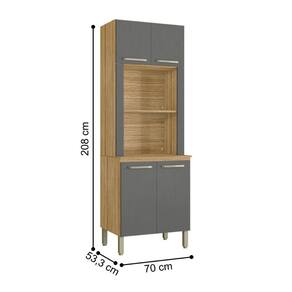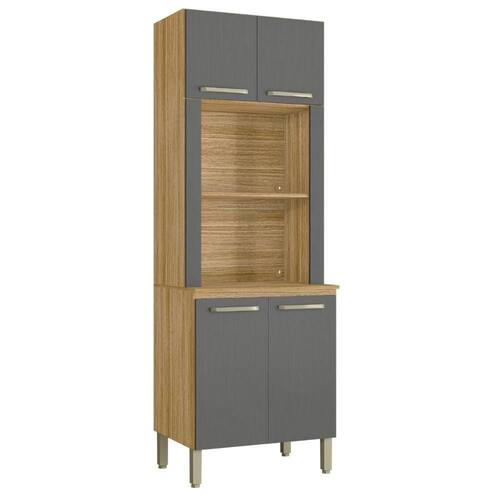 Produzido em MDP de 15 mm., madeira reconstituída provinda de reservas manejadas para este fim, é um produto ecologicamente correto. Nas quatro portas são utilizadas dobradiças 100% metálicas que garantem facilidade e no abrir e fechar das portas. Dispõe de amplo espaço interno para melhor organizar os objetos da cozinha, além de um micho para microondas e forno elétrico. Os puxadores são ergônomicos em plástico resistente. Em sua base utiliza pés reguláveis em plástico resistente que propicia perfeita montagem mesmo em pisos com pequenos desníveis.