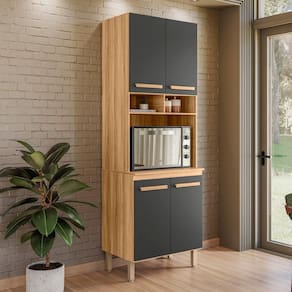Modelo: Paneleiro Duplo; Altura: 212,5 cm; Largura: 70 cm; Profundidade: 53 cm; Material da estrutura: MDP; Quantidade de portas: 04; Material de dobradiças: Metálicas; Quantidade de gavetas: Não se aplica; Com puxador: Sim, em MDF; Quantidade prateleiras: 02; Pés com regulagem: Sim; Peso suportado: até 58 kg distribuídos; Requer montagem: Sim (kit montagem incluso);