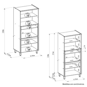 Dimensões: Altura: 230 cm Largura: 70 cm Profundidade: 52 cm Peso: 64,45 kg