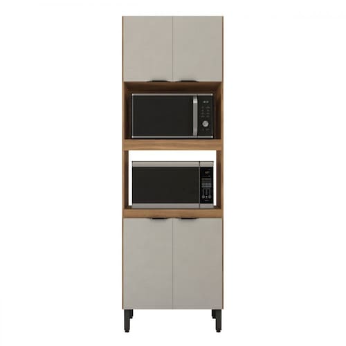 O(a) Paneleiro Firenze Duplo Forno 4 Portas Amêndola/Nude - Demóbile é produzido em MDP na escala de brilho Fosca com Textura e Fosco, e possui um grau de dificuldade de montagem: Médio.