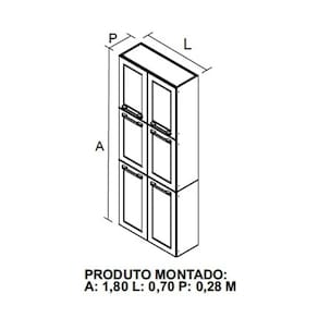 Paneleiro Florença 6 Portas Itatiaia_x000D_ O Paneleiro Florença 6 Portas Itatiaia é uma peça funcional e elegante para a sua cozinha, proporcionando uma solução de armazenamento eficiente e moderna. Seu design suspenso libera espaço no chão, criando uma sensação de leveza no ambiente. Equipado com seis portas resistentes, oferece amplo espaço para organizar e exibir sua coleção de utensílios culinários e itens de cozinha. Além disso, o modelo conta com o corpo em aço, revestido com pintura eletroestática a pó, puxadores em ABS com acabamento metalizado, dobradiças de 26 mm que facilitam a abertura e o fechamento da porta, proporcionando mais durabilidade para sua cozinha._x000D_ _x000D_ _x000D_ _x000D_ MEDIDAS_x000D_ _x000D_ _x000D_ Altura _x000D_ 180cm_x000D_ _x000D_ _x000D_ Largura _x000D_ 70cm_x000D_ _x000D_ _x000D_ Profundidade_x000D_ 28cm_x000D_ _x000D_ _x000D_ _x000D_ _x000D_ _x000D_ _x000D_ CARACTERÍSTICAS_x000D_ _x000D_ _x000D_ Fabricante_x000D_ Itatiaia_x000D_ _x000D_ _x000D_ Modelo_x000D_ Paneleiro Florença_x000D_ _x000D_ _x000D_ Garantia_x000D_ 3 meses_x000D_ _x000D_ _x000D_ Tipo de produto_x000D_ Paneleiro_x000D_ _x000D_ _x000D_ Ambiente_x000D_ Cozinha_x000D_ _x000D_ _x000D_ Estrutura_x000D_ Aço_x000D_ _x000D_ _x000D_ Quantidade de Portas_x000D_ 06_x000D_ _x000D_ _x000D_ Quantidade de Gavetas_x000D_ Não Possui_x000D_ _x000D_ _x000D_ Tipo de Porta_x000D_ Bater_x000D_ _x000D_ _x000D_ Quantidade de Pés_x000D_ Não Possui. Modelo deve ser fixado na Parede._x000D_ _x000D_ _x000D_ Tipo de Dobradiça_x000D_ Metálica_x000D_ _x000D_ _x000D_ Tipo de Puxador_x000D_ Metalizado_x000D_ _x000D_ _x000D_ Tipo de Corrediça_x000D_ Não Possui_x000D_ _x000D_ _x000D_ Acabamento_x000D_ Pintura Eletrostática a Pó_x000D_ _x000D_ _x000D_ Estilo_x000D_ Moderno_x000D_ _x000D_ _x000D_ Detalhe_x000D_ Vidro em 02 Portas_x000D_ _x000D_ _x000D_ Necessita Montagem_x000D_ Sim_x000D_ _x000D_ _x000D_ Acompanha Manual de Instalação_x000D_ Sim_x000D_ _x000D_ _x000D_ _x000D_ _x000D_ _x000D_ _x000D_ INFORMAÇÕES IMPORTANTES_x000D_ _x000D_ _x000D_ Objetos decorativos que porventura apareçam na foto, não acompanham o produto._x000D_ Não nos responsabilizamos pela montagem/instalação dos produtos._x000D_ _x000D_ _x000D_ Montagens, desmontagens e instalações são responsabilidades do cliente._x000D_ Indicamos que contrate uma empresa de montagem ou um montador de sua confiança._x000D_ _x000D_ _x000D_ Além disso, favor verificar se os pés e acessórios estão dentro do forro inferior do produto._x000D_ Em suma, todas as informações divulgadas sobre o produto são de responsabilidade do Fabricante._x000D_ _x000D_ _x000D_ As cores do produto podem variar de acordo com o seu monitor, a iluminação do ambiente em que você está e até mesmo a sua percepção visual._x000D_ Além da cor, pequenos detalhes e acabamentos podem não ficar evidentes na foto, por isso as imagens são meramente ilustrativas_x000D_ _x000D_ _x000D_