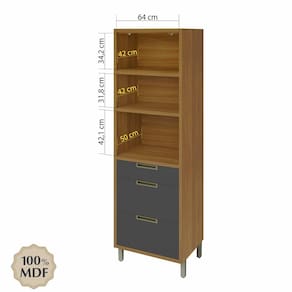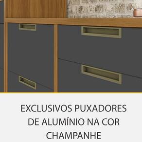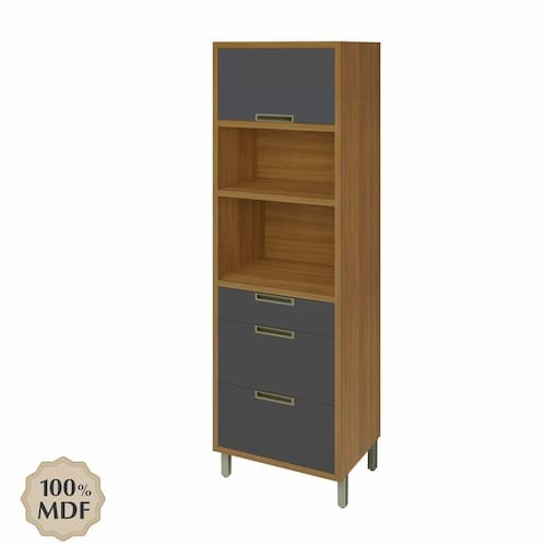 O Paneleiro possui 1 Porta com abertura basculante com pistão a gás e 3 gavetas com espaço suficiente para melhor organizar a sua Cozinha. Além disso, ele apresenta dois Nichos para micro-ondas e forno elétrico, sendo o nicho de forno elétrico com duto de liberação de calor. Possui puxadores embutidos elegantes e modernos na cor Champanhe. Este produto proporciona funcionalidade ao seu dia a dia e é produzido com matérias prima de primeira linha e ferragens tecnólogicas de última geração.