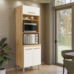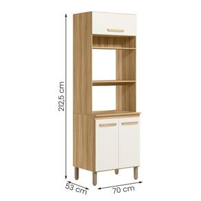 Modelo: Paneleiro Torre Quente; Altura: 212,5 cm; Largura: 70 cm; Profundidade: 53 cm; Material da estrutura: MDP; Quantidade de portas: 03, sendo 1 basculante com pistão; Material de dobradiças: Metálicas; Quantidade de gavetas: Não se aplica; Com puxador: Sim, em MDF; Quantidade prateleiras: 02; Pés com regulagem: Sim; Peso suportado: até 70 kg distribuídos; Requer montagem: Sim (kit montagem incluso);