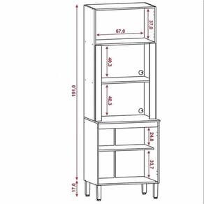 Modelo: Ametista Paneleiro Duplo Forno Produzido com MDP de 15 mm 4 porta Prateleira interna Dobradiças telescópicas metálicas Puxadores ergonômicos em plástico Pés reguláveis em plástico Acabamento em pintura com secagem em luzes UV