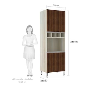 Paneleiro Luciane 70cm Nicho Microondas 4 Portas e 1 Nicho Lis - Marrom