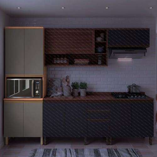 O Paneleiro da linha Macadâmia é solução ideal para ampliar espaço otimizar a organização em sua cozinha. Este módulo possui um estilo que remete aos móveis planejados e uma sofisticada e moderna combinação de cores, além de se destacar pela qualidade em sua composição: possui caixaria robusta, portas equipadas com dobradiças com sistema de amortecimento slow motion - para garantir mais suavidade nos movimentos de abertura e fechamento - e pés com regulagem de altura. Outra característica que faz a diferença: este módulo possui uma moldura em MDF, que além de trazer um bonito efeito visual, reforça a qualidade desse item. O Paneleiro possui ainda um espaço para forno ou micro – aquele eletro muito utilizado no dia a dia, que precisa estar sempre ao alcance de sua mão. Por ser totalmente modulada, a linha Macadâmia lhe permite combinar este Paneleiro com outros itens da mesma linha e montar a sua cozinha dos sonhos. Acabamento da Porta: Finish Foil Acabamento da Prateleira: Finish Foil Acabamento dos Pés: Polipropileno Altura dos Pés: 17 cm Ambiente Principal: Cozinha Complexidade da Montagem: Média: pode ser montado por mais de uma pessoa e/ou necessite de maior conhecimento para montagem Cor: Freijó/Grafite Cor do Produto: Freijó/Grafite Cor Interna: Freijó Escala de Brilho: Semi-Brilho Escala de Brilho da Porta: Semi-Brilho Escala de Brilho da Prateleira: Semi-Brilho Itens Inclusos: 1 Paneleiro, Manual de Montagem, Kit Ferragens Manual de Montagem e Instalação: https://cdn2.madeiramadeira.com.br/atributo/telasul/1306477-m914301-a3.pdf Material da Dobradiça/Corrediça da Porta: Aço Material da Porta: MDP Material da Prateleira: MDP Material dos Pés: Polipropileno Necessita Montagem: Sim Origem do Produto: Nacional Pés Reguláveis: Sim Peso: 54 kg Peso Máximo por Prateleira: 12 kg Possui Espelho: Não Possui Possui Pés: 04 Possui Portas: 04 Possui Prateleiras: 04 Possui Rodízio: Não Recomendações de Uso, Manutenção e Limpeza: Na limpeza, utilizar pano macio levemente umedecido em água e sabão neutro. Após, secar para evitar mofo no produto.Nunca utilizar álcool ou produtos abrasivos e, principalmente, esponjas de aço ou qualquer material que arranhe a superfície.Evitar o armazenamento de substância ácidas (sal, vinagre, limão, cebola, etc) em contato direto com o móvel. Sapatas Niveladoras: Não Sistema de Montagem: Parafuso, Cavilha, Minifix Tipo de Dobradiça/Corrediça da Porta: Soft close Tipo de Puxador da Porta: Embutido