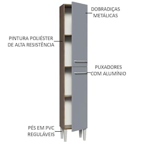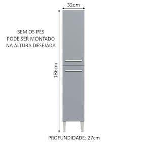 O móvel conta com duas portas convencionais, com dobradiças metálicas resistentes e puxadores com alumínio. É ideal para a organização de louças, eletroportáteis e mantimentos. Os pés em PVC possuem regulagem para ajustes de pequenos desníveis do piso.