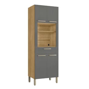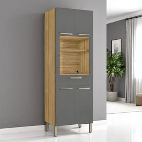 Produzido em MDP de 15 mm., madeira reconstituída provinda de reservas manejadas para este fim, é um produto ecologicamente correto. Nas quatro portas e na ampla gaveta são utilizadas dobradiças 100% metálicas e corrediças telescópicas que garantem facilidade e segurança no abrir e fechar das portas e gavetas. Dispõe de amplo espaço interno para melhor organizar os objetos da cozinha, além de um nicho para microondas e prateleira para pequenos objetos ou decoração acima do microondas. Os puxadores são ergônomicos em plástico resistente. Em sua base utiliza pés reguláveis em plástico resistente que propicia perfeita montagem mesmo em pisos com pequenos desníveis. Um produto que certamente irá ajudar na organização de sua cozinha, aproveitando muito bem os espaços.