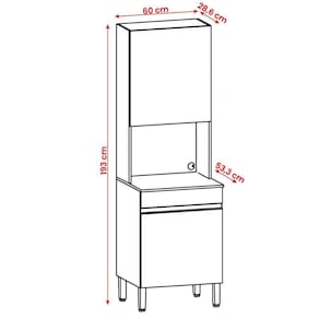 Dimensões: 60 cm (L) x 193 cm(A) x 53,3 cm(P);
