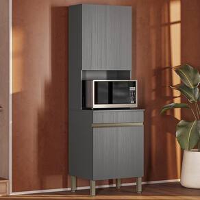 Paneleiro Microondas, definição de organização e design moderno para sua cozinha. Produzido em MDP (15mm) com acabamento em pintura UV texturizada. Conta com 02 portas (porta superior com sistema passante), dobradiças metálicas, prateleiras internas, passa fio embutido e puxador em perfil alumínio (pintura epóxi). Pés reguláveis em plástico resistente. Este produto será entregue em 01 volume.