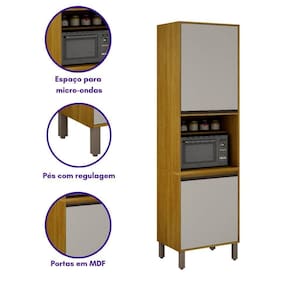 O Paneleiro 2 Portas com Nicho e Espaco para Microondas Nala e uma solucao pratica e elegante para a sua cozinha. Com duas portas para armazenar utensilios e mantimentos, ele tambem conta com um nicho decorativo, perfeito para pequenos objetos ou itens de facil acesso. O espaco dedicado ao micro-ondas garante mais organizacao e otimizacao do ambiente. Seu design moderno combina com diferentes estilos, trazendo funcionalidade sem abrir mao da estetica.