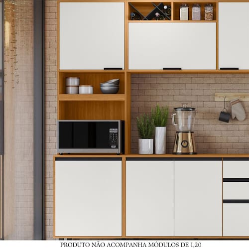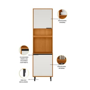 O Paneleiro Duplo 2 Portas Ravena Poliman ? a escolha perfeita para quem busca uma combina??o de eleg?ncia e funcionalidade. Com 2 portas de bater, com dobradi?as refor?adas de 26mm, 3 prateleiras internas e um compartimento exclusivo para micro-ondas -A.50cm x L.57cm x P.50cm-, proporcionando praticidade e aproveitamento de espa?o al?m do nicho decorativo -A.19cm x L.57cm x P.29cm-. Seus puxadores pretos em pol?mero agregam modernidade, enquanto os p?s regul?veis de 17cm em PVC garantem o nivelamento perfeito, adaptando-se facilmente a diferentes tipos de piso. Fabricado em MDP com acabamento em pintura UV, que confere maior durabilidade e resist?ncia. O acabamento acetinado nas portas proporciona um toque de sofistica??o, harmonizando perfeitamente com diferentes estilos de decora??o. Al?m de ser ecologicamente correto, o produto vem embalado de forma especial, garantindo que chegue em perfeito estado ? sua casa. O Paneleiro Duplo Ravena Poliman ? uma excelente escolha para quem busca qualidade, praticidade e design moderno, refletindo toda a confian?a que a marca Poliman oferece.