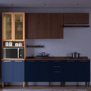 O Paneleiro Sálvia é a escolha certa para complementar o espaço em sua casa com muito charme e qualidade. Seu visual é semelhante ao dos móveis planejados, e possui uma combinação de cores cheia de personalidade: Freijó e Azul. Além de bonito e espaçoso, este Paneleiro se destaca pela qualidade de sua composição: é equipado com modernas dobradiças com sistema de amortecimento slow motion com caneco de 35mm, para mais suavidade na abertura e fechamento; já os puxadores em modelo alça são feitos em alumínio – muito mais resistentes - e os pés possuem sistema de regulagem de altura para facilitar a usabilidade. Outro destaque aqui são os vidros com efeito reflecta gold que, além de serem super elegantes, oferecem toda a segurança por serem temperado. O Paneleiro dispõe também de área para forno ou micro, e nicho de decoração. Combine este módulo com outros itens da linha Sálvia e crie a sua cozinha dos sonhos! Acabamento da Porta: Finish Foil Acabamento da Prateleira: Finish Foil Acabamento dos Pés: Polipropileno Altura dos Pés: 17 Ambiente Principal: Cozinha Complexidade da Montagem: Média: pode ser montado por mais de uma pessoa e/ou necessite de maior conhecimento para montagem Cor: Freijó/Azul Cor do Produto: Freijó/Azul Cor Interna: Freijó Escala de Brilho: Semi-Brilho Escala de Brilho da Porta: Semi-Brilho Escala de Brilho da Prateleira: Semi-Brilho Gaveta com Chave: Não Itens Inclusos: 1 Paneleiro, Manual de Montagem, Kit Ferragens Manual de Montagem e Instalação: https://cdn2.madeiramadeira.com.br/atributo/telasul/1353251-m908504-a3.pdf Material da Dobradiça/Corrediça da Porta: Aço Material da Porta: MDP Material da Prateleira: MDP Material do Puxador da Porta: Alumínio Material dos Pés: Polipropileno Necessita Montagem: Sim Origem do Produto: Nacional Pés Reguláveis: Sim Peso: 58 Peso Máximo por Prateleira: 12 Possui Espelho: Não Possui Possui Pés: 04 Possui Portas: 04 Possui Prateleiras: 03 Possui Rodízio: Não Recomendações de Uso, Manutenção e Limpeza: Na limpeza, utilizar pano macio levemente umedecido em água e sabão neutro. Após, secar para evitar mofo no produto.Nunca utilizar álcool ou produtos abrasivos e, principalmente, esponjas de aço ou qualquer material que arranhe a superfície.Evitar o armazenamento de substância ácidas (sal, vinagre, limão, cebola, etc) em contato direto com o móvel. Rodízio com Trava: Não Sapatas Niveladoras: Não Sistema de Montagem: Parafuso, cavilha, prego, Minifix Tipo de Dobradiça/Corrediça da Porta: Soft close Tipo de Puxador da Porta: Externo undefined: 852284