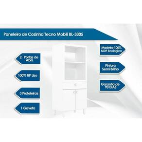 Paneleiro de Cozinha Tecno Mobili BL-3305 c/ 2 Portas, 1 Gaveta e Nicho p/ Microondas - Branco